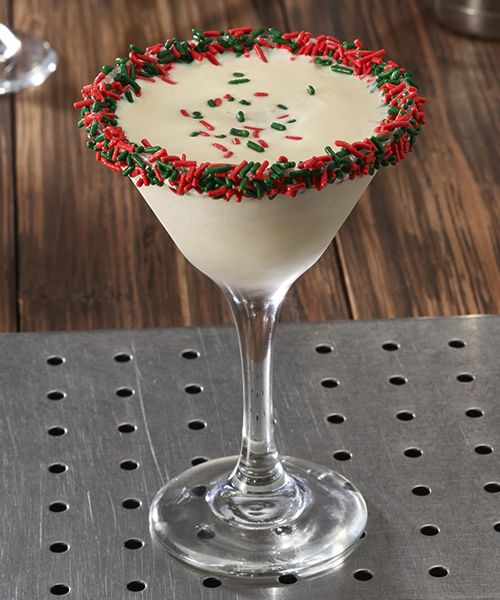 North Pole Nightcap Martini – Smirnoff® Vanilla Vodka, Baileys® Irish Cream and Disaronno® amaretto shaken with fresh cream and topped with holiday sprinkles.